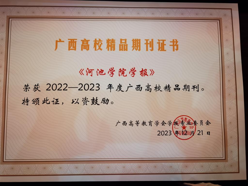 【喜讯】《河池学院学报》荣获2022-2023年度广西高校精品期刊