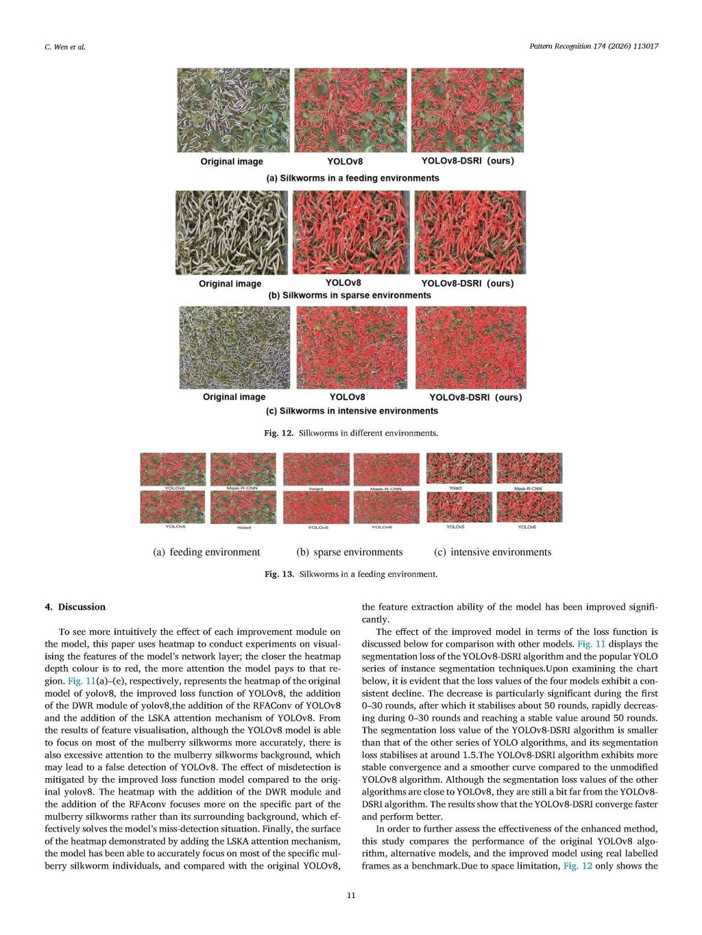 近日,我院人工智能教研室团队在蚕桑与人工智能交叉领域收获重大成果,其研究论文“YOLOv8-DSRI: An improved YOLOv8 instance segmentation algorithm for identifying silkworms in dense environments”在人工智能与模式识别领域国际顶尖期刊《Pattern Recognition》上正式刊发。该成果与广西民族大学人工智能学院文春明教授团队合作,为农业场景中密集生物的视觉检测开辟了新的技术路径。