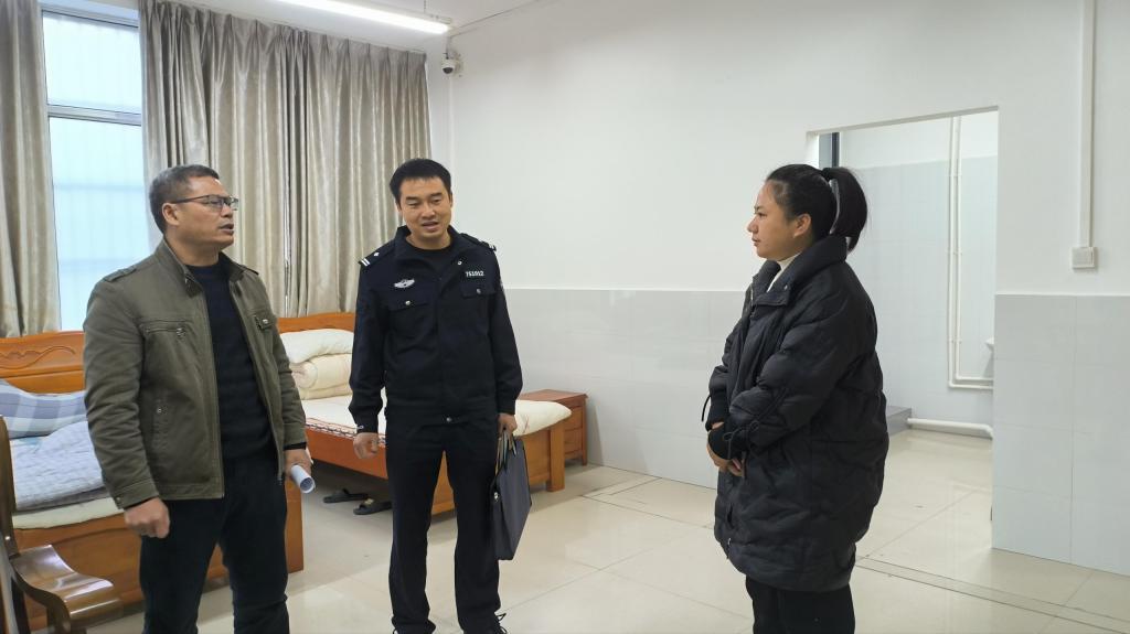 2024年12月17日早上城东派出所副所长、警校联络官谢夏夏,宜州公安分局民警谢祥峰检查学校保密室