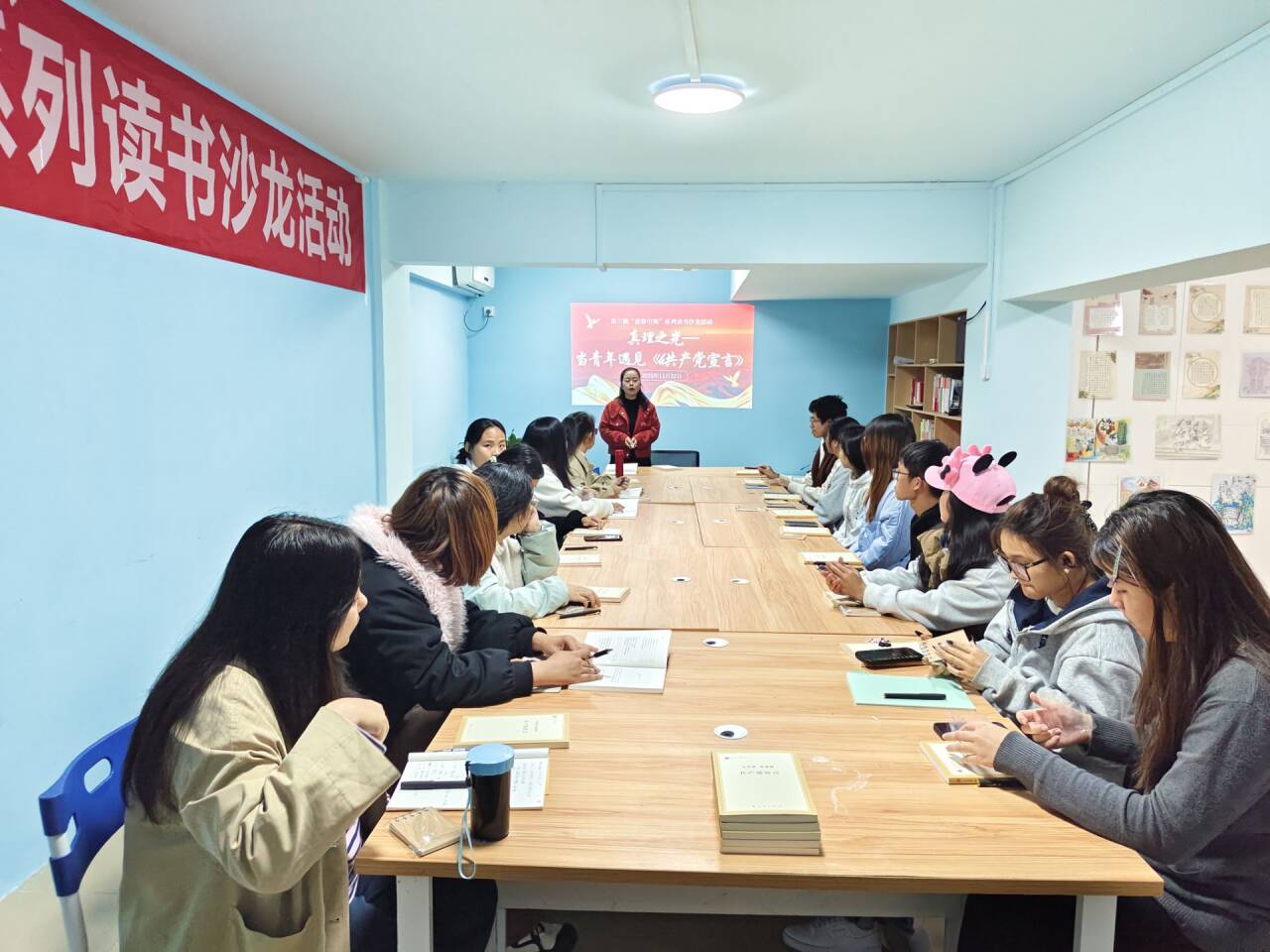六期沙龙活动以“思想引领”为核心,分为两大板块。“真理之光”三部曲围绕《共产党宣言》展开,师生们分别从《共产党宣言》与新时代的关联、当代价值以及青年视角的学习感悟三个维度,深入研读经典理论精髓,探讨真理的时代意义。“初心传承”系列三期活动聚焦《习近平的七年知青岁月》的成长故事,通过史料解读、故事讲述、互动交流等形式,重现知青扎根黄土地、艰苦奋斗、服务群众的青春历程,让在场师生深刻感悟初心使命与奋斗精神。