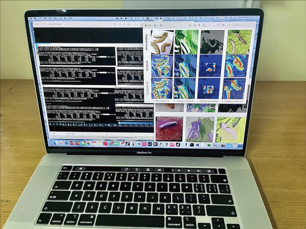 工作室简概:智蚕慧创是由我校陈鹏、梁志勋老师指导的学生团队。团队成员来自大数据与计算机学院的软件工程专业和化学与生物学院的应用化学专业,研究方向主要为人工智能与计算机视觉,项目成员有邱帥銘、王秒璀、廖芳芳、陈炜明、张丁文,其中项目负责人为邱帥銘。我们工作室专注于开发一种基于改进 RT-DETR-SC(RT-DETR+CGLU+SMAFB)模型的智能化蚕病检测系统。该系统聚焦于解决传统蚕病检测方法在小目标病害区域特征提取和复杂背景干扰方面的局限性,通过引入 CGLU(Channel-Gated Linear Unit)模块优化通道间特征融合,结合 SMAFB(SMAFormerBlock)模块强化多维度注意力机制,显著提升模型对小目标病害区域的特征提取能力,实现高精度、高鲁棒性的病害检测,且具备实时性好、推理速度快、无需后处理等优点,可充分满足实际生产中的快速检测需求。本项目紧密贴合国家推动农业智能化发展的政策方向,利用深度学习和计算机视觉技术,为蚕桑产业提供智能化病害检测解决方案,助力地方蚕桑产业升级,为国家智慧农业与乡村振兴战略贡献青年科技力量。