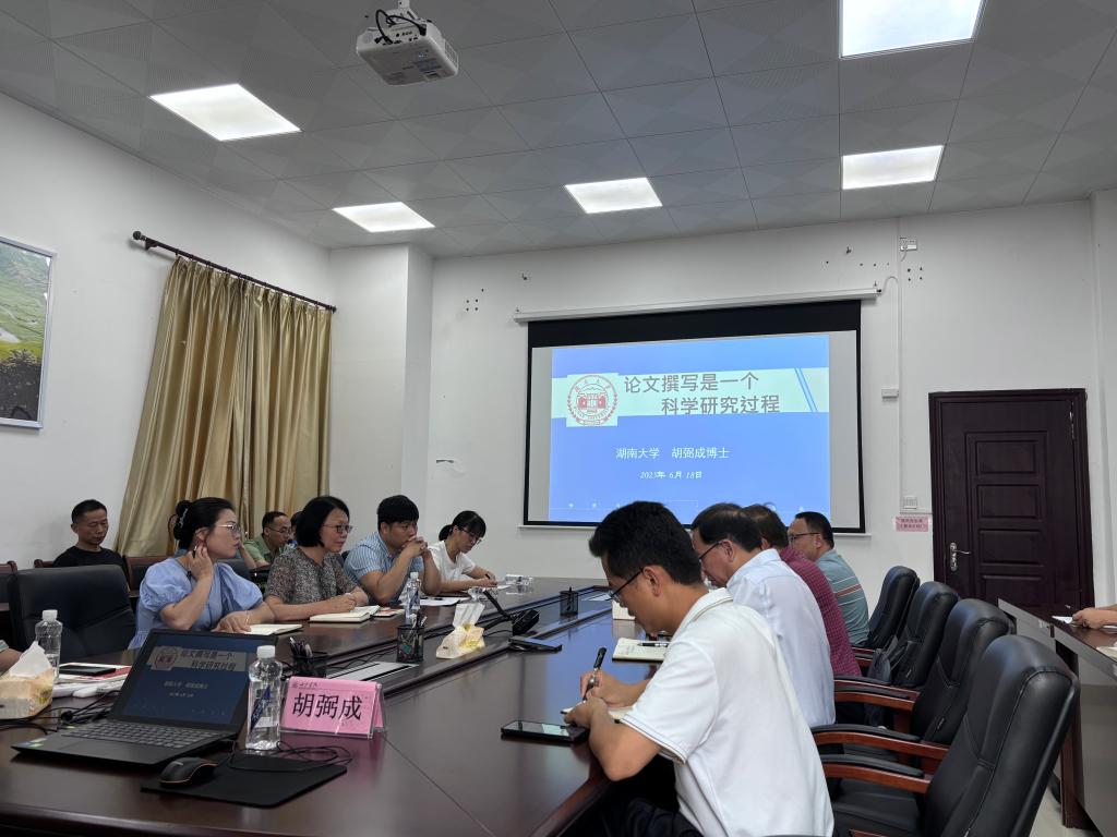 6月18日,马克思主义学院在弘毅楼2-208会议室举办了论文撰写专题讲座,特邀湖南大学教授、博士生导师胡弼成作题为“论文撰写是一个科学研究过程”的专题报告。学院全体教师到场聆听了讲座。