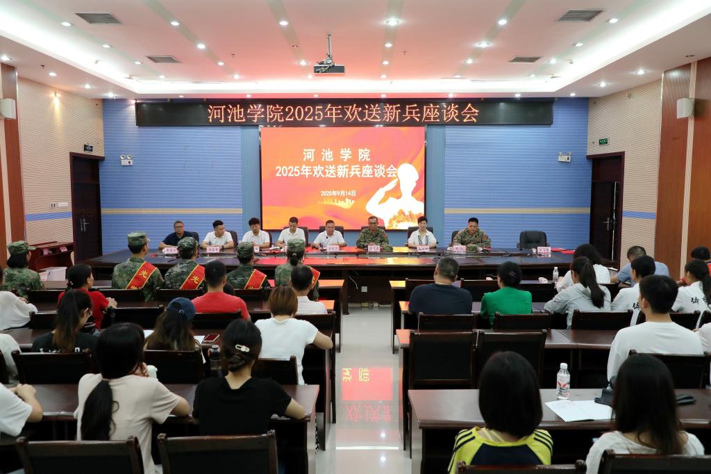 9月14日,我校在图书馆122会议室召开2025年欢送新兵座谈会,欢送4名学子踏上征程、奔赴军营。学校党委常委、副校长唐毓首出席座谈会,学校相关部门、二级学院负责人,入伍新兵、新兵家长及在校生代表参加座谈会。