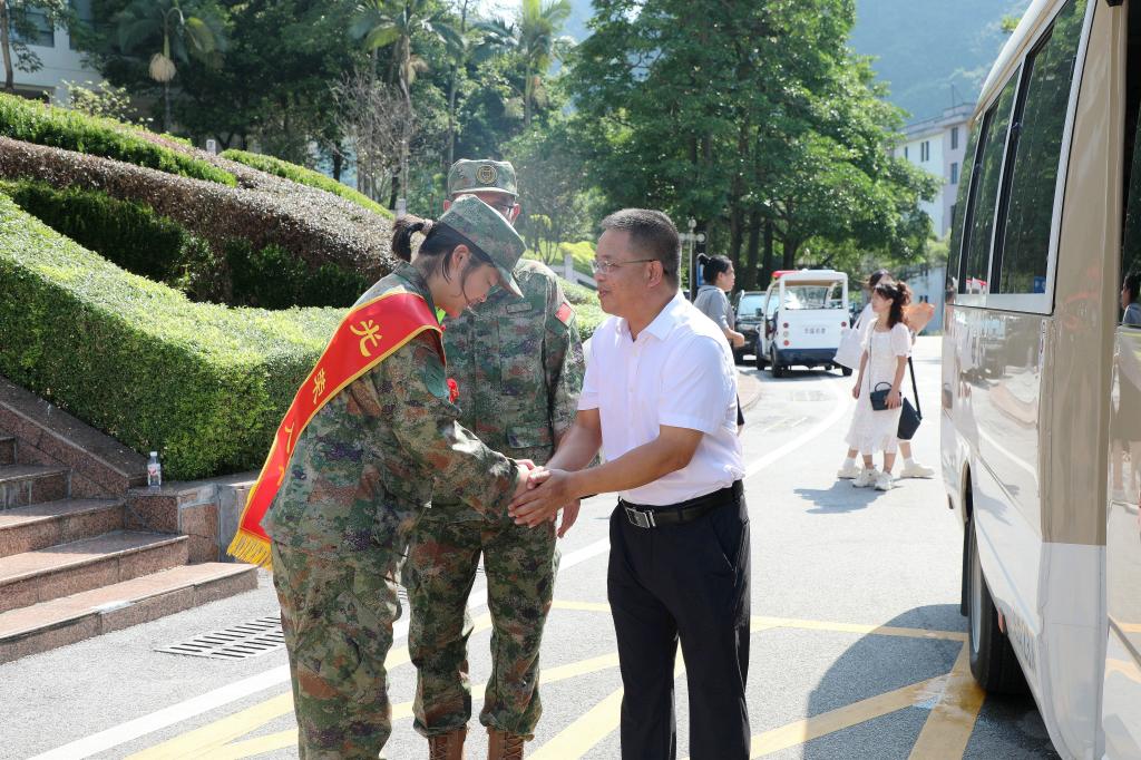 会后,唐毓首与新兵家长、部分师生在图书馆前欢送新兵上车,亲切话别。(作者:吴海娇 拍摄:吴海娇 校对:罗冬雨 审核:韦海燕)