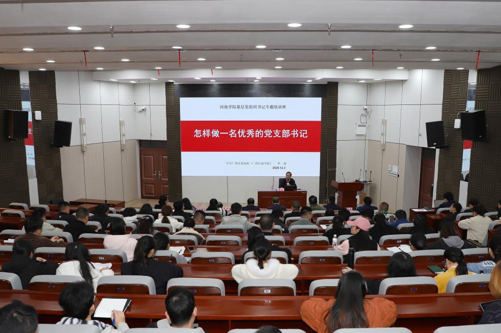 为进一步增强党支部书记履职能力,提升基层党建工作质量,12月3日,我校特邀中共广西区委党校(广西行政学院)李波教授到校作《怎样做一名优秀的党支部书记》专题讲座。全校基层党支部书记参加培训。