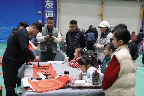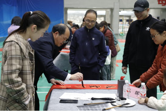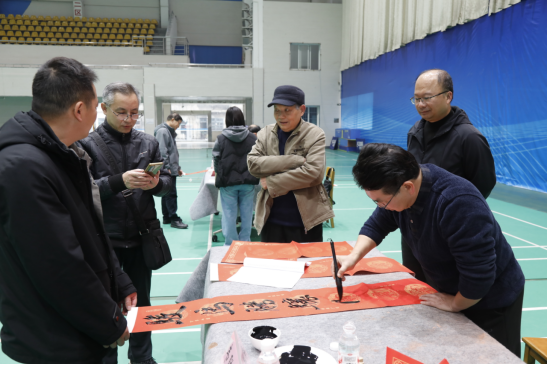 灵蛇舞动别旧年,骏马奔腾迎新春。1月17日上午,我校体育馆内热闹非凡,一场以“送万福、进万家”为主题的2026年春节书法公益活动在此精彩开启,约200名教职工及其家属欢聚一堂,共赴文化之约。