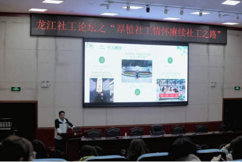 11月30日,公共管理学院在弘毅楼1-205会议室举办“龙江社工论坛之‘厚植社工情怀赓续社工之路——社会工作成长经历与专业素养分享’”主题讲座,特邀南宁市社会福利院副科长、高级社会工作师谭寿敢主讲,社会工作专业非毕业班全体同学参加讲座。