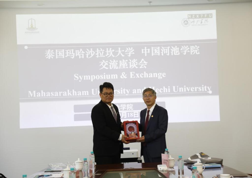 President Prayook Srivilai attached great importance to this visit and specially organized an 11-member delegation to visit our university. The delegation included assistant presidents in charge of research, health, and physical education, deans of the Faculty of Business, Faculty of Technology, Faculty of Informatics, School of Humanities and Social Sciences, School of Science, and Confucius Institute, as well as leaders from functional departments such as the Academic Affairs Service Division and Development Planning Division. President Prayook Srivilai expressed his gratitude for the warm reception from our university and showed great satisfaction with the well-arranged itinerary. He introduced the disciplinary strengths of Mahasarakham University in fields such as agricultural sciences, biotechnology, education, and humanities. He noted that Hechi University has achieved remarkable results in sericulture industry research and technical services, and there is broad potential for cooperation between the two institutions in this field. He expressed the hope that this visit would promote the establishment of long-term collaboration mechanisms between the two universities in talent cultivation, scientific research, and industry services.