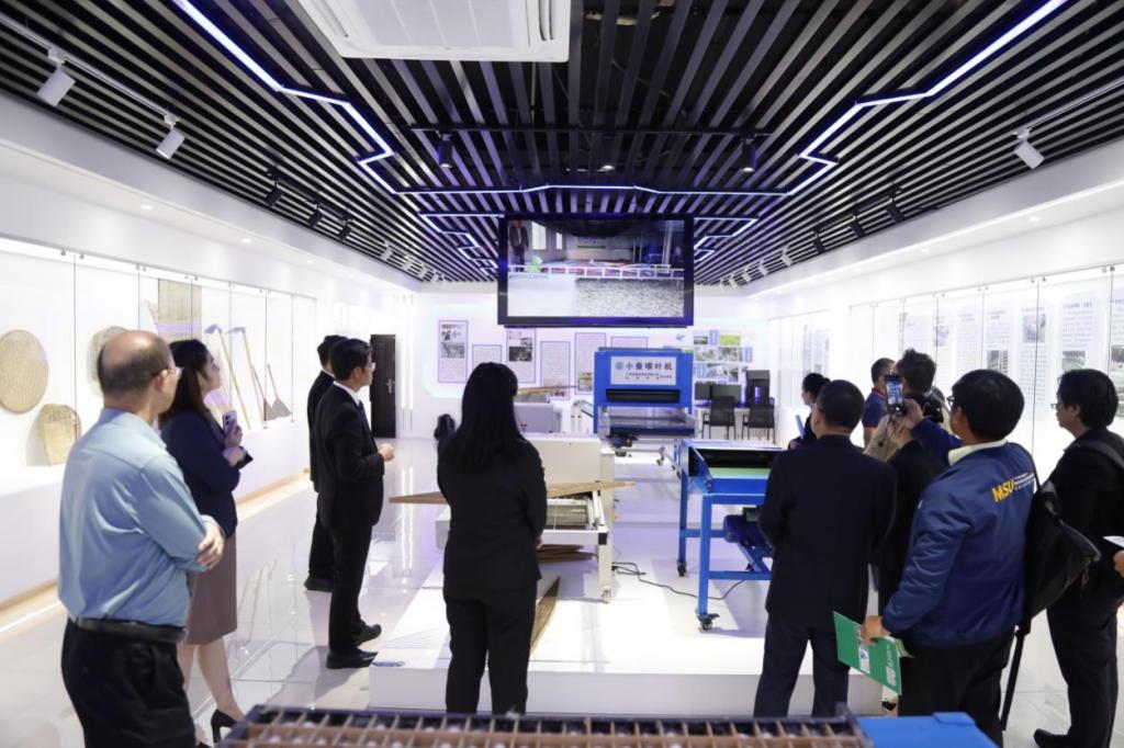 During the visit, the delegation also toured various facilities including our university’s Animal Museum, Guangxi Modern Sericulture and Silk Industry College, Local Characteristics Collection Exhibition Center, and Single Bamboo Drifting Training Base. They viewed the ethnic costume designs and painting exhibitions by students from the School of Fine Arts and Design, as well as dance performances by students from the School of Music and Dance. Additionally, the delegation conducted field research at enterprises such as Guangxi Wuhe Bo’ao Pharmaceutical Co., Ltd., Guangxi Jialian Silk Co., Ltd., and Guangxi Danquan Group Industrial Co., Ltd., and held discussions with the People’s Government of Hechi City.