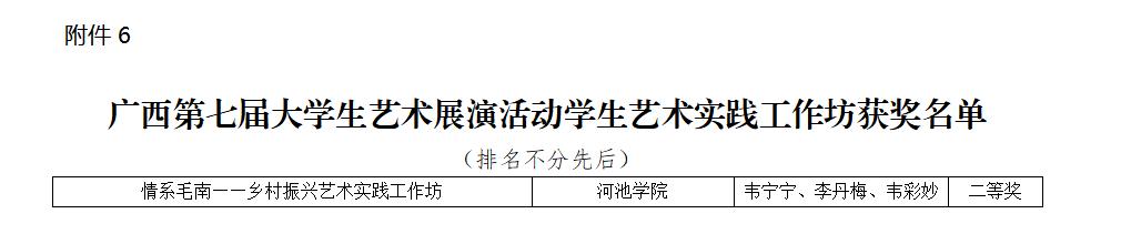 近日,据自治区教育厅文件获悉,我校在广西第七届大学生艺术展演活动共获得一等奖13项、二等奖22项、三等奖5项的好成绩,同时学校并在本届艺术展演活动中获优秀组织奖。