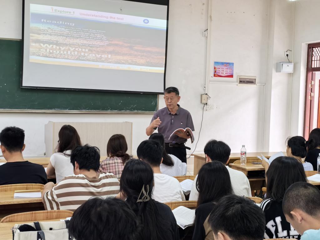 为更好地发挥优秀教师在教育教学中的示范、引领和辐射作用,促进教师专业成长以及教师间相互学习、相互交流,4月18日上午,外国语学院(国际教育学院)银龄教师黄运亭教授在弘毅楼3-201教室为师生上了一堂《大学英语》公开课。