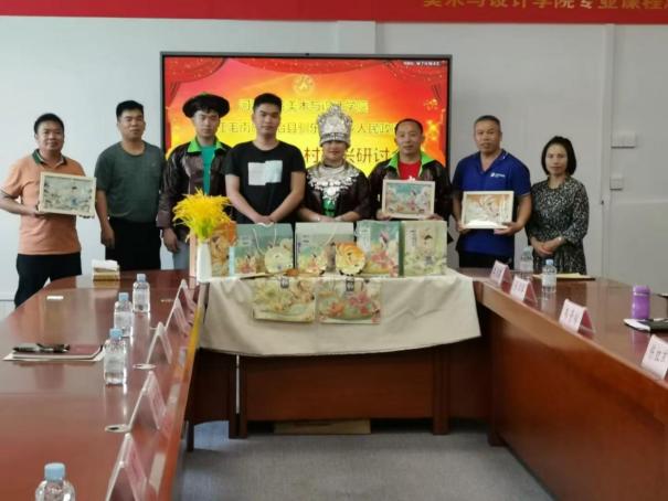 与巴马壹秋堂工艺品有限公司共建产学研基地,开展民族编织技艺创新研究,开发可降解工艺材料,推动非遗技艺与现代设计的融合。与河池文旅企业共建“刘三姐文化创意产业园”,孵化民族文创品牌3个,服务地方企业VI设计、企业视觉升级项目20余项,取得了很好的经济效益和社会效益。